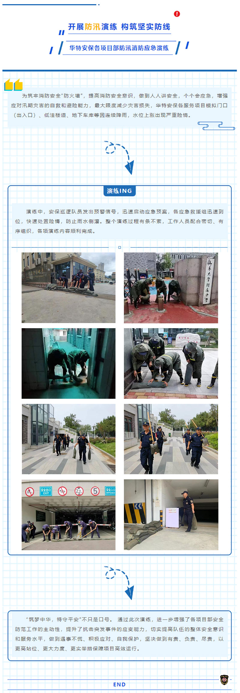 开展防汛演练 构筑坚实防线--华特安保各项目部防汛消防应急演练