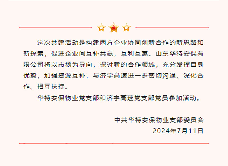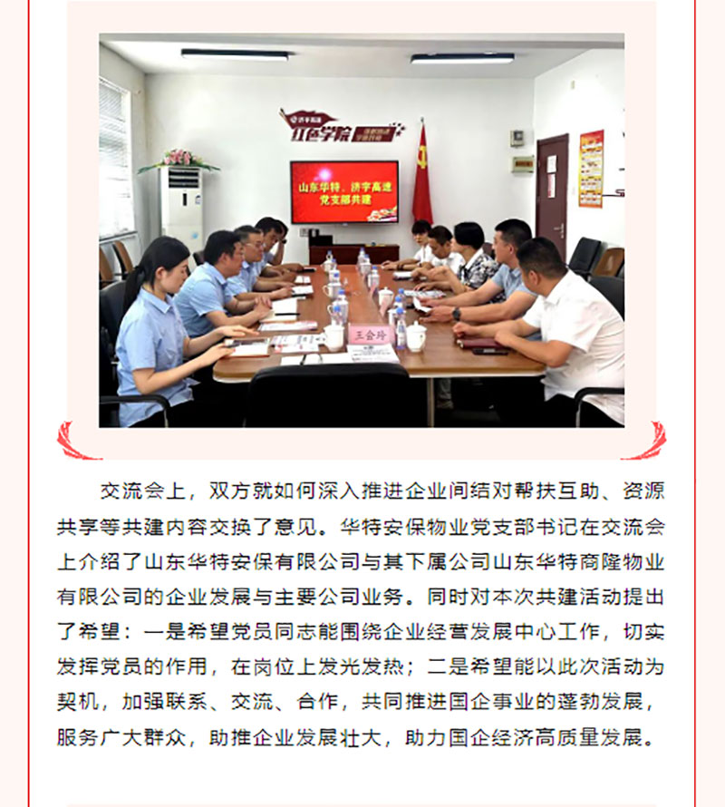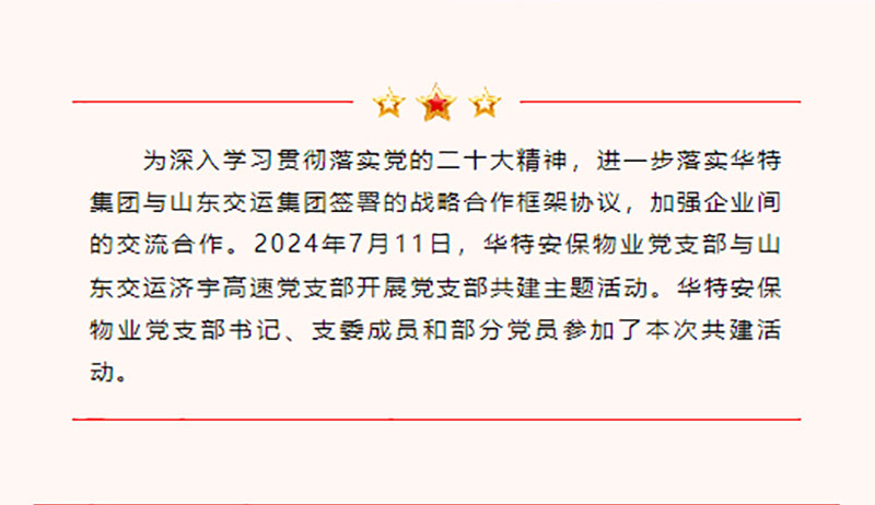 党建共建聚合力 携手共进赢未来 | 华特安保物业党支部与山东交运济宇高速党支部共建活动