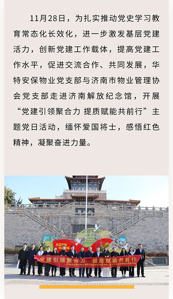 党建引领聚合力-提质赋能共前行——华特安保物业党支部与济南市物业管理协会党支部共赴济南解放阁开展党性教育实践活动