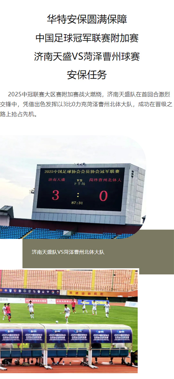 华特安保圆满保障中国足球冠军联赛附加赛济南天盛VS菏泽曹州球赛安保任务